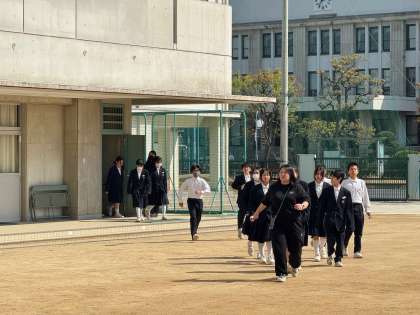 本日6限目、火災を想定した避難訓練を行い、4分台で全生徒がグラウンドに集合することができました。