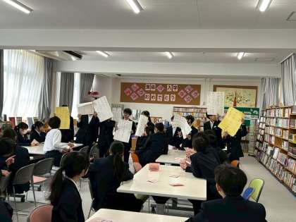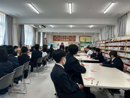 本日、1年生に向けて司書の仲さんから図書室の利用について、オリエンテーションがありました。