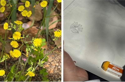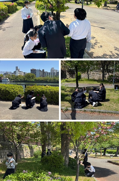 生徒たちは班ごとに分かれ、配布されたワークシートに沿って植物をスケッチしながら特徴を記録していきました。
