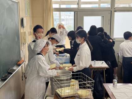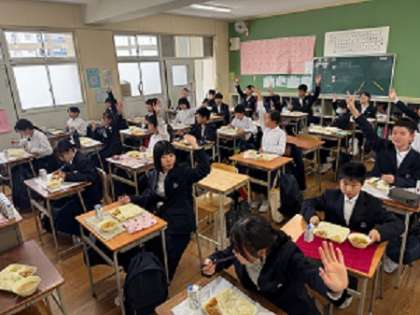 1年1組では副担任の「かしわの唐揚げ、おかわりほしい人!」の声に8割近い生徒が手を挙げ、教室は大盛り上がり。