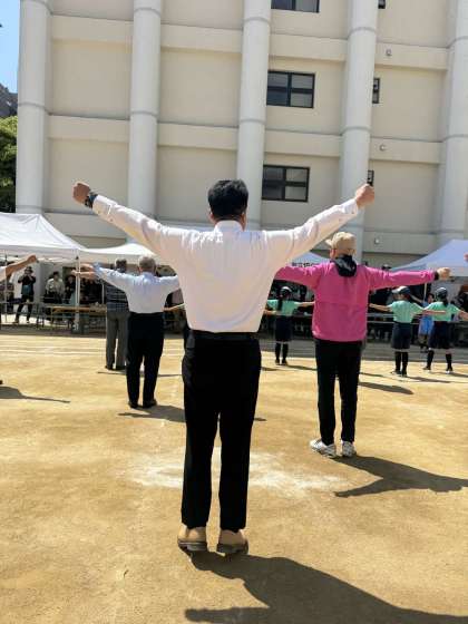 本校の教頭は体育科出身だけあり、前列で模範となるキレのある動きを披露しました。