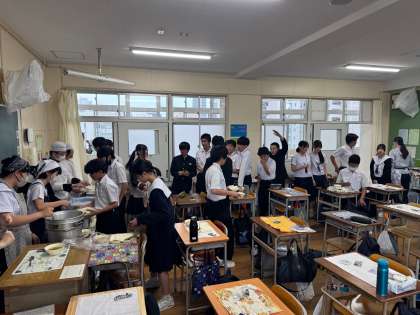 季節の味を楽しみながら、仲間とのやり取りでも盛り上がる給食タイムとなりました。