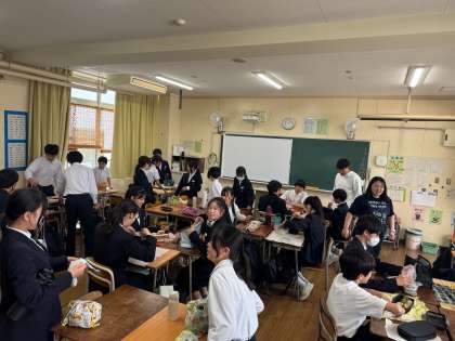 まるで遠足のような雰囲気で、友だち同士おかずを見せ合いながら楽しく味わっていました。