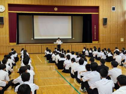 来週の修学旅行や今後の学校行事、進路を見据え、自分の行動に責任を持ち、人に手を差し伸べられる大人をめざしてほしいとのことです。