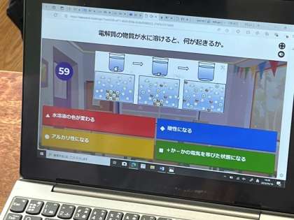 終盤の確認テストではクイズ形式アプリ「Kahoot!」を使用し、正解が表示されるたびに生徒から歓声があがるほどの盛り上がりを見せました。