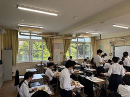 2年4組は配膳に取りかかる時刻が大幅に遅れましたが、当番が力を合わせ、比較的早い時間に「いただきます」を迎えられました。