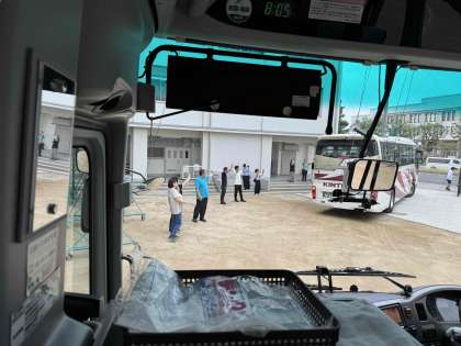 朝7時40分から出発式を行い、予定通り8時ちょうどにバスが学校を出発しました。