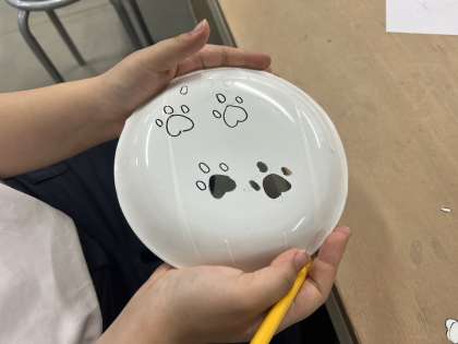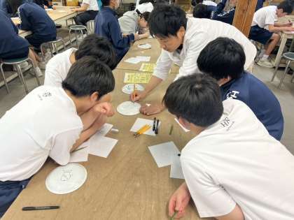 サンドブラスト体験では、書いたイラストや文字をカッターで切り取る作業中です。