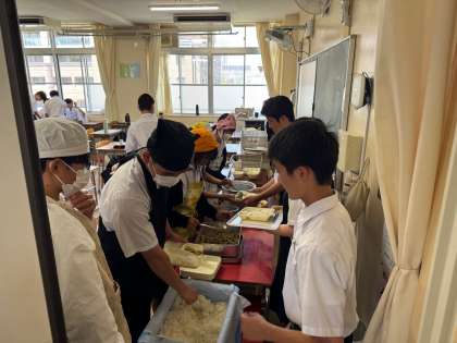 3年4組では、驚異の配膳スピードで、みんな和気あいあいと喫食する姿が見られました。