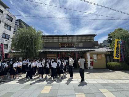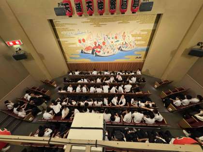 火曜日の校外学習とは、打って変わっての快晴のもと、学校から歩いて約20分ほどで到着し、現在開演を待っているところです。