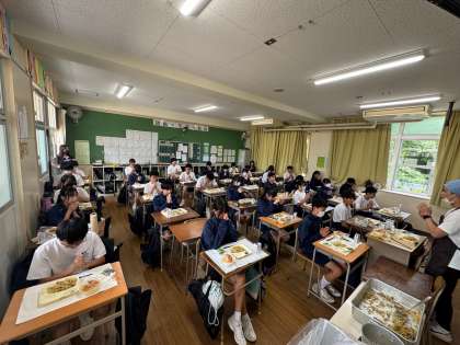 2年3組は配膳係の連携が見事で、ほかのクラスよりも早く準備を終え、ゆったりとした「いただきます」の時間を確保。