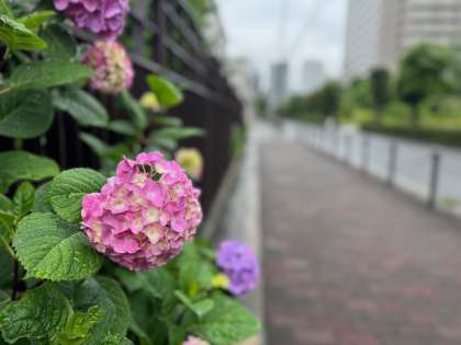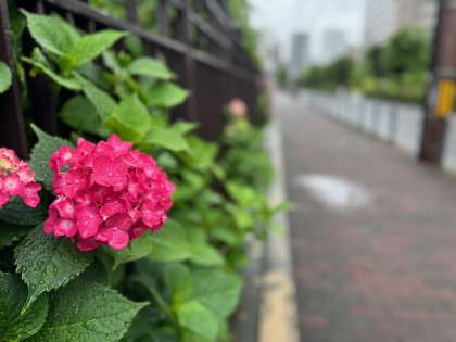 学校の紫陽花はさらに色づき、しっとりとした空気の中で静かに揺れていました。
