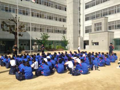 14時50分ごろ、予定より早く無事帰校しました。お出迎えいただいた保護者のみなさま、有難うございました。
