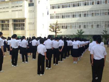 5月2日(月)、月曜日恒例の全校朝礼をおこないました。校長先生から、4月27日の創立記念日に関わってのお話がありました。本校を卒業されて、社会で多大な活躍をしておられる方々についてのお話もありました。