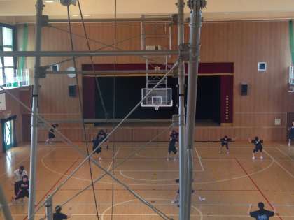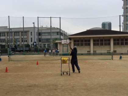 当日午後には各所で部活動の練習が行われていました。写真は女子バスケットボール部と、女子テニス部の練習のようすです。いずれも顧問教員が丁寧に指導していました。