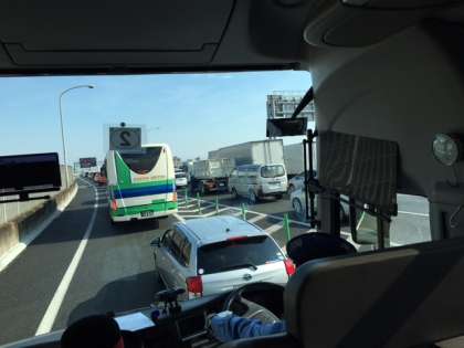阪神高速道路東大阪線を経由して近畿自動車道に入ります。現在、東大阪の荒本近辺を通行中ですが、落下物による渋滞でなかなか動きません。