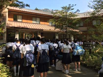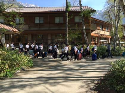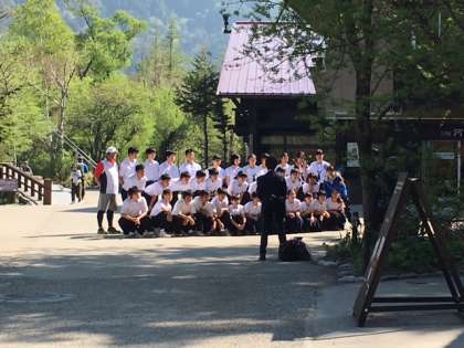 その後、河童橋にて学級写真を撮り、上高地を出発しました!!今から高山別院へ向かいます。