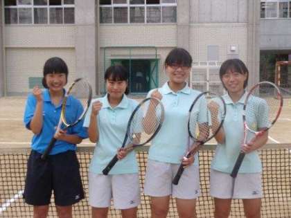 《女子ダブルス》 ベスト16 村上智咲(左から2人目)・田中奈々子(左端)