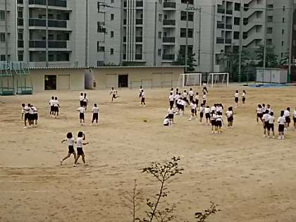 5時間目に体育の授業で、3年生の学年練習をしました。