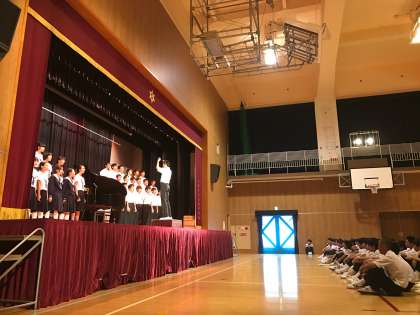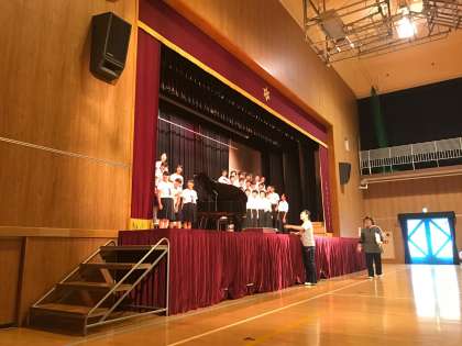 写真は2年生の音楽コンクールリハーサルの様子です。
