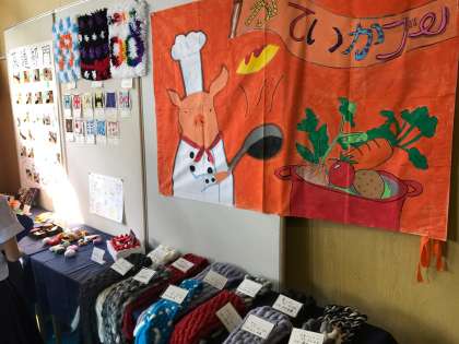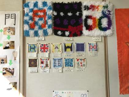 格技室にて展示している、家庭科部の作品です。