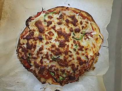 オーブンで焼き上がったピザは、程よい焦げ目もついて、