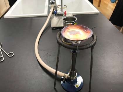 2年生、マグネシウムの燃焼実験です。先に行った銅の酸化に比べて、はるかに激しく、眩い光を放ちながら反応しました。この後の定量的なデータの処理も上手くできていました。