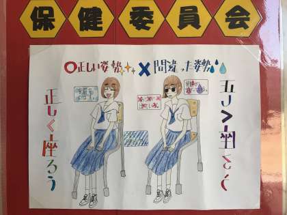 今月の保健委員会のポスターです。正しい姿勢で授業を受けることができていますか。