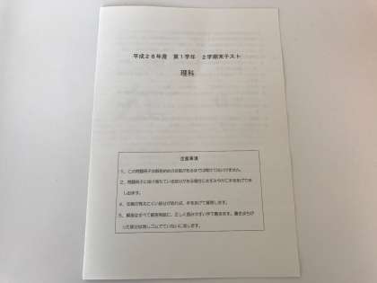 写真は2時間目、理科のテスト直前の1年生の学級のようすです。念には念を入れて試験に臨んで欲しいとの旨のお話を試験監督の先生から聞きながら、配布されたテストを真剣な表情で受け取っていました。
