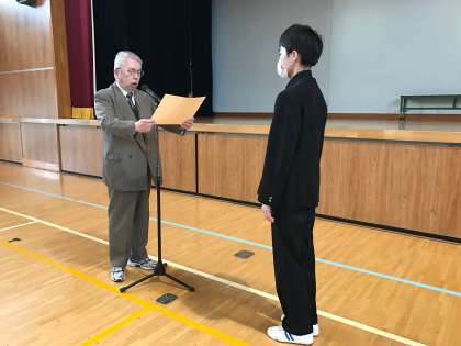 本日の始業式に先立って、北税務署長より表彰された「税の作文」についての表彰状の伝達を行いました。