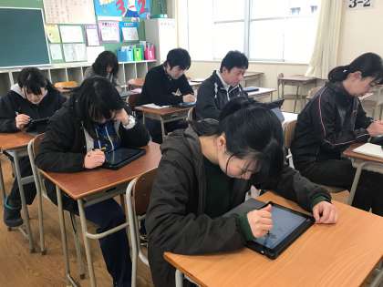 授業のない冬休みの教室で本日、教職員ICT活用研修会を行いました。