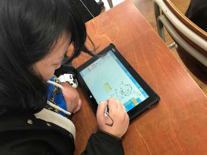 外部講師による研修は本年度2回目で、今回は本年度整備されたノートPCやタブレット端末を有効活用した授業法について、とりわけ協働学習の場面での活用についての研修となりました。