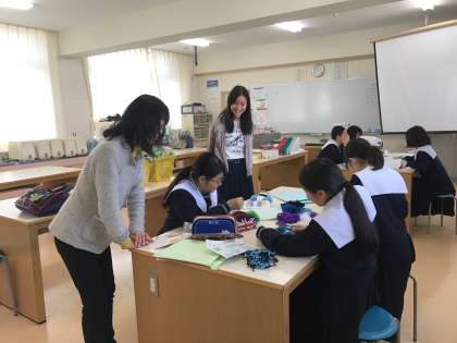 家庭科部の活動のようすです。先輩も見にきてくれました。