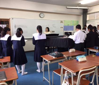 2年生、中先生による社会科と正木先生による音楽科の授業のようすです。