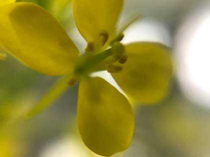 1年生の理科の授業のようすです。セイヨウカラシナの花をルーペで観察、分解して貼って標本のようにしました。