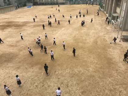 グランドでは貸し出し用の学級ボールで運動する生徒がたくさんです。