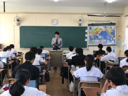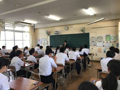写真はテスト配布を待つ3年生の様子と、1年生の授業の様子です。