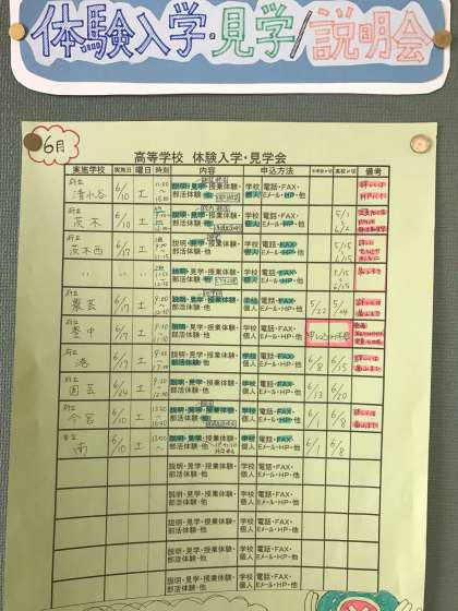 また、多くの高等学校で、体験入学や見学会・説明会の告知、申し込みを各学校のホームページで行なっていますので、興味・関心のある高等学校については、ホームページもご覧下さい。