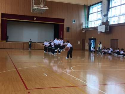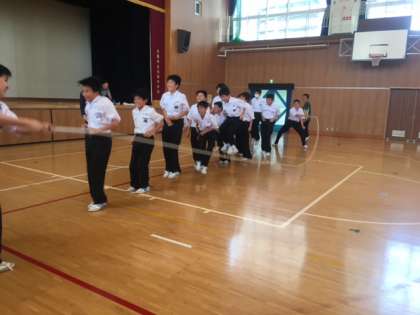 本日5時間目、1年生は自然体験学習で行われる大縄大会の練習をしました。