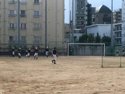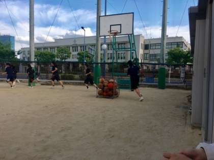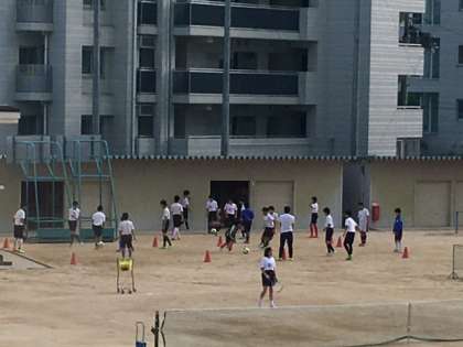 写真はグランドでの部活動のようすです。校舎内では吹奏楽部の楽器の音が響き渡っていました。