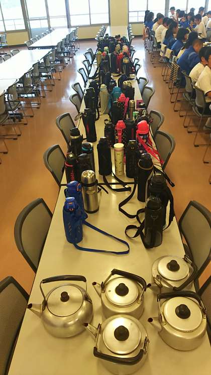 ご飯のおかわりをして、しっかりと食べてくれる生徒もあります。本日必要な、水筒へのお茶の補充もできました。暑い一日になりそうです。