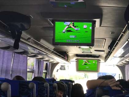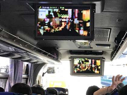 次の休憩場所、恵那峡SAまでの道中を各クラスのレクリエーション係の活躍で楽しく過ごしています。