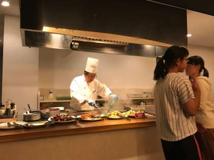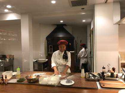 ピザは目の前で生地をつくって、窯で焼いた焼きたてです。