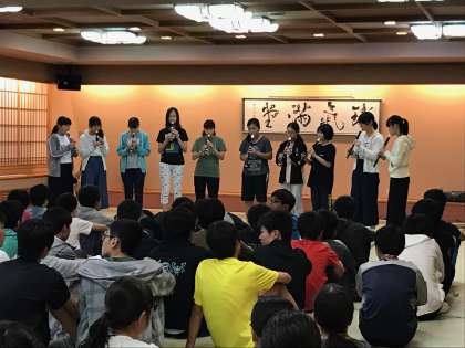 吹奏楽部の演奏です。吹奏楽部が本気でリコーダーを練習した成果を見せてくれました。