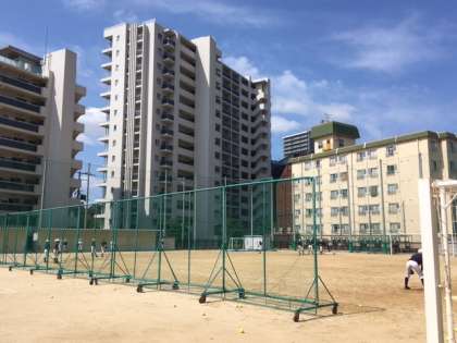 本日午前中のグラウンドでは、野球部と女子テニス部が活動していました。