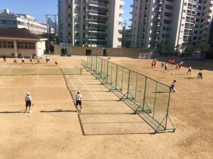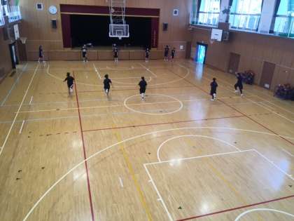 グラウンドでは男子テニス部とサッカー部、体育館では、男女バスケットボール部が練習しています。