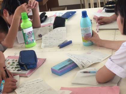 衣服の汚れと手入れについて、実際使っている洗剤の表示を見て学習しました。