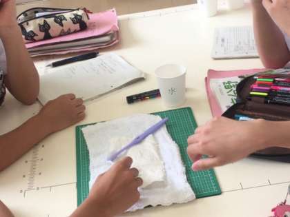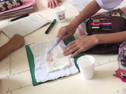 ポスターカラーで実際にインクを落とすしみぬきの実験をしました。