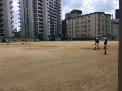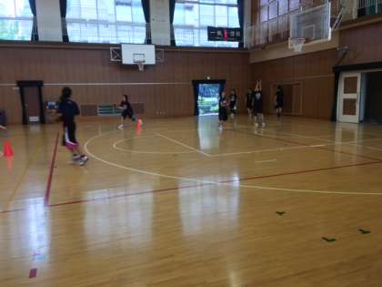 グラウンドでは野球部、体育館では女子バスケットボール部が活動しています。