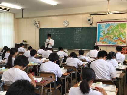 社会科の授業は教育実習生による授業です。